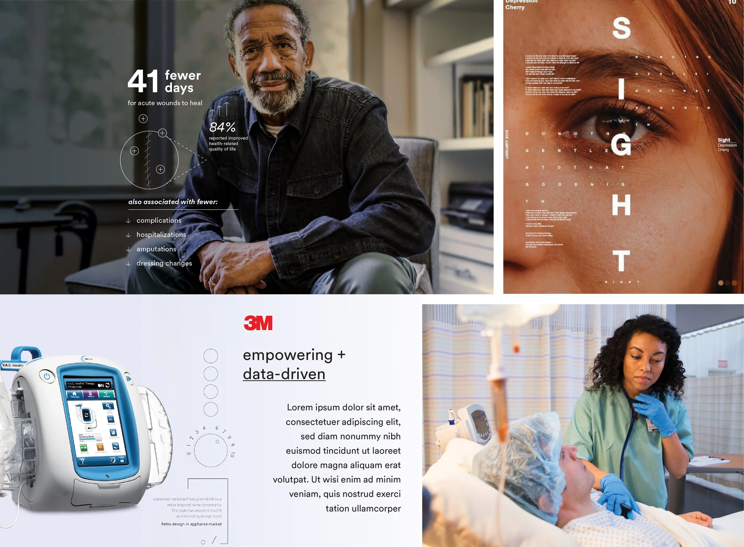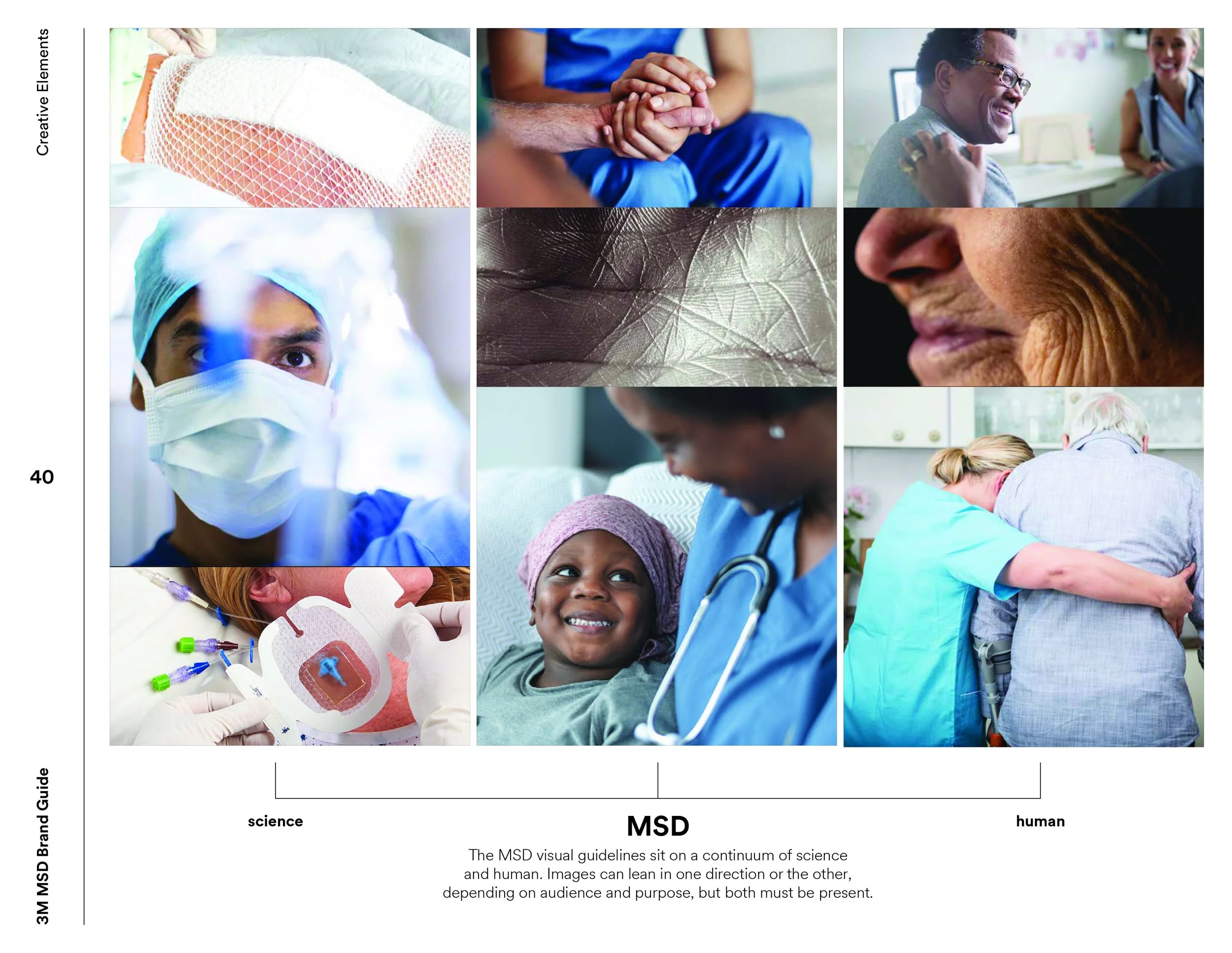 Design and art direction of a brand guide, photo library and campaign work for 3M’s Medical Solutions Division. MSD develops products for healthcare providers that are focused on healing and protecting the skin.